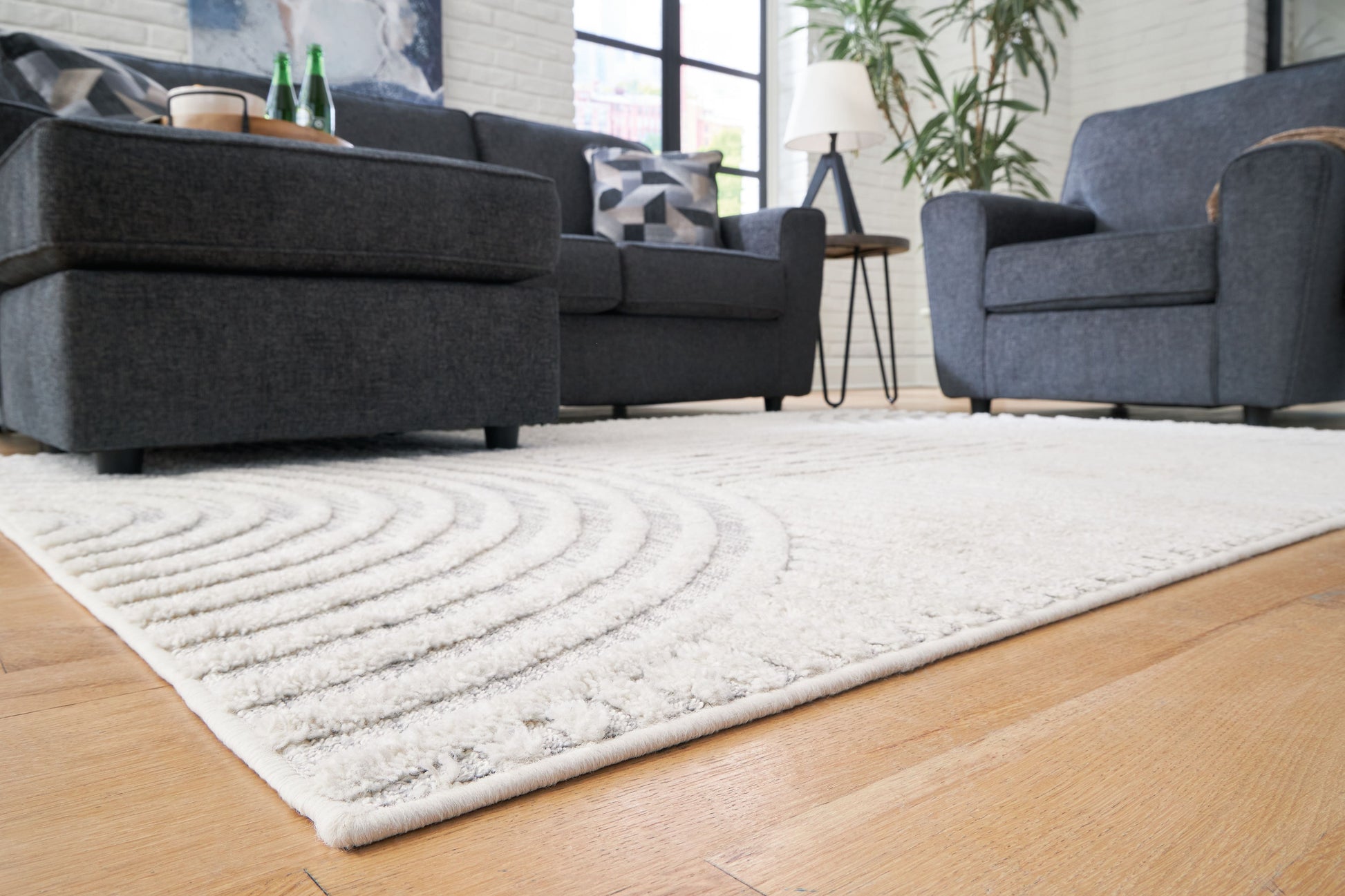 A great area rug should be the intersection of style and comfort. This rug accomplishes just that. Its beautiful graphic design combines lines and half circles to create varied high-low textures. Adding contemporary flair to any room, this rug perfectly complements a variety of spaces.